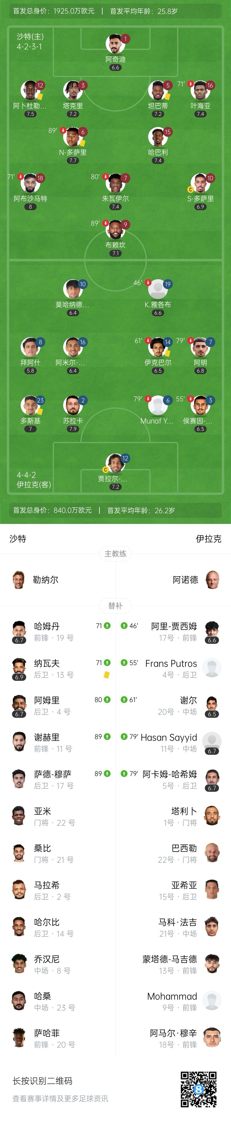 第47分钟,沙特直塞发动攻势,布赖坎左路低平球横传,沙特门前两点包抄没能碰到皮球,阿卜杜勒哈米德后点推射打高。↓